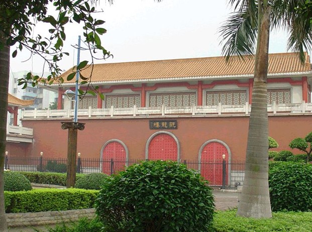 觀龍樓位于愛亨村東南面的牛頭山頂。民國24年(1935年)孫科任中山紀念中學(xué)校董會主席時,與廣東省農(nóng)業(yè)廳商定建立孫中山故居農(nóng)業(yè)所而興建的農(nóng)業(yè)所辦公室。1984年翠亨賓館興建時,將牛頭山及這座樓房接管,辟為游覽點。這幢樓紅墻綠瓦,門前兩條石柱繞著兩條龍,栩栩如生。這里憑高遠望,可清楚望見唐家半島和淇澳島對峙的金星門(金星港),左、右兩個島成長條狀,形似臥龍,正中的金星島,嬌小玲現(xiàn),宛若一顆小珍珠。
