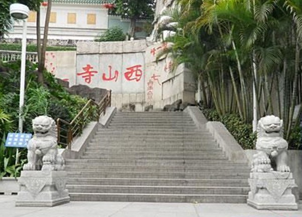 中山西山寺俗稱西山寺,位于廣東省中山市城區(qū)西山公園內(nèi),始建于明朝嘉靖年間,是讀書人喜聚之地。清道光年間,邑人曾望顏曾在此攻讀詩書,至咸豐六年(1856年)他任陜西巡撫署四川總督時,特募資將古寺加以擴(kuò)建。由隱泉庵派僧人心恒為主持,歷代相傳,到1949年已傳至十三代?,F(xiàn)寺內(nèi)有伽蘭殿、韋陀殿、大雄寶殿、準(zhǔn)提殿、觀音殿、六祖殿、地毅殿、塔殿等,頗為壯觀。