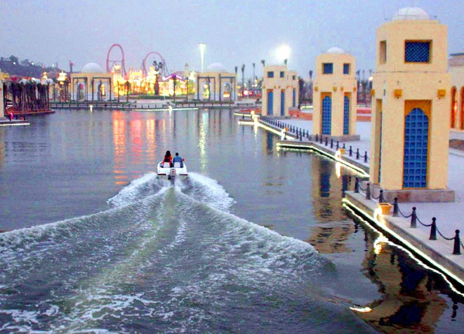 度假城里的神秘島主題樂園有目前世界上最新的傾斜塔、瘋狂松鼠、激流勇進、彈射式過山車等大型現(xiàn)代游樂設施,讓游客在互動中感受極限快樂。而依湖而建的漁人碼頭,設有大型水幕電影,40多艘游艇可在全園貫通的水面游弋,到達園區(qū)內(nèi)任何一個景點。美食廣場、專賣店、酒吧、西餐廳在這里星羅棋布,充滿西方嘉年華氛圍。另外,度假城還擁有1200多個座位的高科技劇院,360度旋轉(zhuǎn)座椅使觀眾能盡情欣賞每晚上演的《海邊的夢》主題晚會。度假城中兩座摩洛哥皇宮風格的五星級酒店,由度假功能主樓、會議功能主樓、蜜月套房和溫泉別墅1000間自然客房組成,充滿濃郁的異國風情。