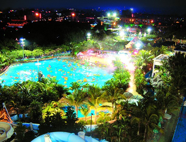 二、濃蔭蔽日、棕櫚搖曳的南國風(fēng)情使人心曠神怡。 闊別一冬的夢幻水城已經(jīng)成為一個(gè)濃蔭蔽日、棕櫚搖曳的綠色的世界,漂流河、兒童池、滑道以及情侶池等被綠蔭所掩蓋,那些爬藤植物使所有的遮陰棚看起來象一座座涼爽的小屋,使“古老的廊堡”更添滄桑感。在一片綠色的世界下面,潔凈的水汩汩而流,水槍水炮在樹逢里噴射,這是一個(gè)真正的清涼世界。