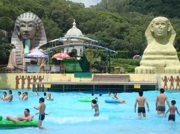 夢幻水城以水為核心,采用了世界上最先進(jìn)的水上樂園設(shè)計(jì)方案、設(shè)備器材,有瀑布區(qū)、人造浪池、激流河、漂流河、兒童反斗區(qū)等大型區(qū)域,并有40多米高的瀑布、古埃及的母親之神依希斯、太陽之神拉神以及勇猛的何露斯、魔力無窮的法老和妖后等,還用水景雕塑、鮮艷的壁畫裂痕的藝術(shù)、精致的浮雕等營造濃厚的環(huán)境藝術(shù),還會(huì)上演融入現(xiàn)代高科技、表演藝術(shù)的大型水上節(jié)目。