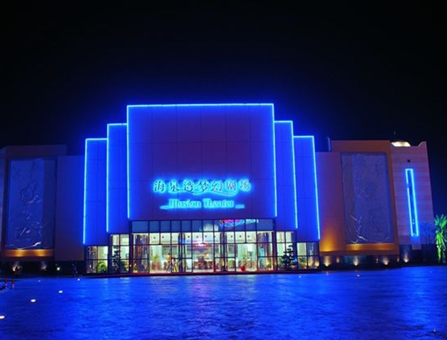 夢幻劇場坐落在海泉灣度假區(qū)大型主題活動和游客美食休閑娛樂的中心——漁人碼頭,是海泉灣投資1億多元人民幣精心打造的國內(nèi)首屈一指的現(xiàn)代化、多功能室內(nèi)劇場,能滿足大型歌舞晚會和慶典活動現(xiàn)場直播需求??偨ㄖ娣e8033平方米,劇場內(nèi)凈空高14米,舞臺臺口高9米、寬16.6米、深17.5米,舞臺總面積787.5平方米,能容納1250多位觀眾,座椅分為貴賓席、嘉賓席和普通席,三分之一的座椅具有360度旋轉(zhuǎn)等特殊功能。