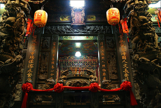 再內(nèi)為大雄寶殿,供奉釋迦牟尼佛,該殿占地頗廣,因而三十燭光的燈泡更顯出洞內(nèi)的幽暗,但暗并不妨礙行者的修行,正如殿上的喝語(yǔ):仙自燦爛展臺(tái)稱,洞常幽暗境常清,一顆明星在暗夜中更顯出其明亮,而佛菩薩更能在紛擾熙攘的環(huán)境中求得一片凈土,因而所處雖紛亂、晦暗,卻能保有一顆澄明、平常的心。寶殿右側(cè)為地藏殿,供奉地藏王菩薩,為生靈開覺路;左側(cè),供奉民間傳說(shuō)的八仙,更為仙洞巖加上神話色彩。由于石洞天成,且為海蝕,經(jīng)過(guò)長(zhǎng)時(shí)間的侵蝕后,洞內(nèi)時(shí)而有水滴穿流而下;高搬觸石壁,腐蝕的壁巖屑隨著手指的觸摸而沾滿,心頭一驚,心想,這風(fēng)化的石壁不知經(jīng)過(guò)了多久時(shí)間的摧殘才形成?若再一直風(fēng)化下去,仙洞巖不知能再在宇宙間存在多少時(shí)日?叉百多少有緣人能及時(shí)一會(huì)?