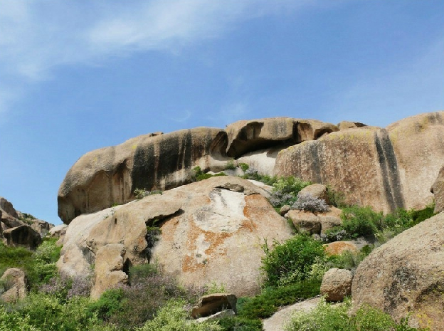 怪石峪中石面,時有巖畫。一獵羊畫,大角羊低頭而立,前方狩獵者兩臂高揚,意在抓羊,兩只獵狗在后狂吠,旨在攔截。狩獵場面緊張激烈,完整生動。巖畫除狩獵圖外,還有對馬、虎、豹、鹿等動物的描繪,也有表現(xiàn)祭祀場面的巖畫。不過,最多的還是狩獵。版權所有聊城聊之旅國際旅行社有限公司,轉載必究!這里的先民生活,從中可窺一斑。 怪石峪多風。大風來時,千竅回音,獅吼虎嘯,熊鳴豹叫,令人震撼。若遇陣風,羊聲牛音,鶯囀鳥啼,則悅于心。 怪石峪方圓230平方公里,海拔高度在780—1350米之間。其石之奇,面之廣,勢之大,非他處可比。
