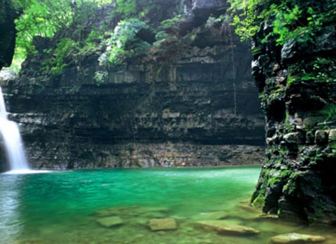 虎跳崖景區(qū)以秀美的山水吸引八方游客?;⑻缕俨己盟埔蛔渲槠溜L(fēng)掛在山腰,俏儷怡人,濺起的水珠晶瑩剔透,風(fēng)又把它吹的如煙如霧,清澈的溪水宛如銀鏈纏繞在群山腳下,水中游蕩翻轉(zhuǎn)的細(xì)鱗魚在陽光的照耀下不時(shí)映出道道銀色的光芒,如詩如畫。順流而下,便可進(jìn)行20公里流程的三道沖河漂流—龍鳳山水庫的源頭漂流,沿岸風(fēng)光秀麗,水流清澈透底。時(shí)而激流湍急,驚險(xiǎn)刺激,時(shí)而穩(wěn)流如靜,平緩蕩漾,令人留漣忘返。