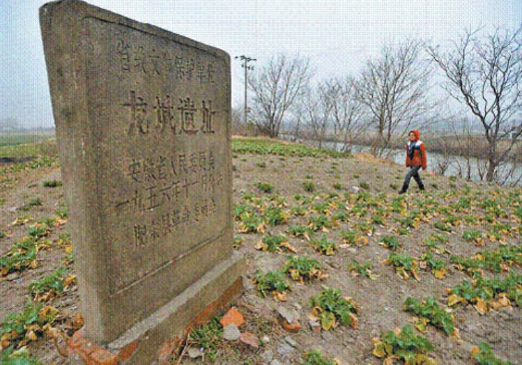 在安徽省肥東縣龍城鄉(xiāng)龍城村。遺址東、西、北三面有3-4米高的土壟,勘查有夯土層,為舊城墻倒塌后所形成。南面仍可識(shí)辨城垣舊址。城垣長(zhǎng)600米,寬420米。舊城址內(nèi)有漢代斷磚、碎瓦、殘?zhí)掌?,以及具有商周時(shí)期特征的遺物。舊城址外幾座村莊多有古墓群,曾發(fā)現(xiàn)漢至南北朝時(shí)期石室、磚室墓群。為省級(jí)重點(diǎn)文物保護(hù)單位。