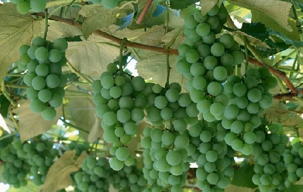 風(fēng)景秀麗的葡萄溝,以盛產(chǎn)優(yōu)質(zhì)葡萄而聞名中外。1994年溝里種植葡萄315.6 公頃,生產(chǎn)鮮葡萄8601噸。這里主要種植無(wú)核白葡萄,還有馬奶子、紅葡萄、喀什哈爾、日加干、瑣瑣等13個(gè)品種。其果實(shí)呈球形、卵形、橢圓形等,有的葡萄晶瑩如珍珠,有的鮮艷似瑪瑙,而有的綠若翡翠。那五光十色、翠綠欲滴的鮮葡萄,令人垂涎不止。