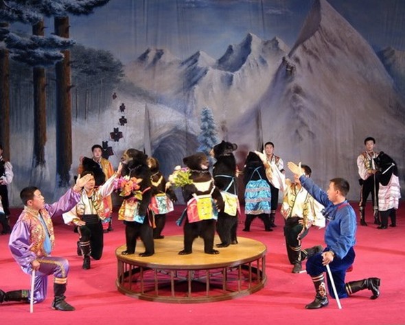 牡丹江黑寶熊樂園:黑龍江黑寶藥業(yè)股份有限公司的黑寶熊樂園坐落在張子才嶺北部“山 青、水秀、林幽、石奇”的牡丹江三道關(guān)國家級森林公園內(nèi),占地10萬平方米,是中國最大的熊科動(dòng)物飼養(yǎng)、繁育、觀展中心,是中國科學(xué)院生命工程系黑龍江省北藥開發(fā)科研基地。黑寶熊樂園既是人類保護(hù)野生動(dòng)物的場所,也是人們旅游、休閑的好去處。當(dāng)您信步走進(jìn)這座熊類王國的樂園時(shí),映入眼簾的是由800多位黑熊、棕熊、馬來熊組成的熊小姐隊(duì)伍,她們將以不同的姿態(tài)歡迎您。令您大開眼界、嘆為觀止。熊是一種智商非常高的動(dòng)物,她的悟性、模仿能力以及與人的親和力都很強(qiáng),黑寶藥業(yè)將黑寶熊樂園經(jīng)過馴化的幾十頭熊與從世界著名雜技之鄉(xiāng)——吳橋請來的雜技演員組成了黑寶熊小姐藝術(shù)團(tuán)。版權(quán)所有山東聊城聊之旅國際旅行社有限公司,轉(zhuǎn)載必究!經(jīng)過訓(xùn)練的熊表演的騎車?yán)?、打籃球、走鋼絲、掰苞米、晃板、跳欄、拳擊、高空表演等節(jié)目與雜技演員的轉(zhuǎn)毯叼花、滾燈、四人技巧、跳繩、蹬技、溜旱冰等數(shù)十個(gè)節(jié)目以其新穎生動(dòng)、扣人心弦、趣味無窮打動(dòng)觀眾,使人流連忘返、贊不絕口,真正形成了“人熊共舞、同臺獻(xiàn)藝”的表演特色。