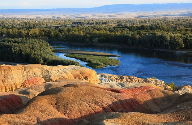 五彩灘位于新疆北端,屬阿勒泰地區(qū),布爾津縣境內(nèi),地處我國(guó)唯一注入北冰洋的額爾齊斯河北岸的一二級(jí)階地上,海拔480米,往哈巴河縣方向,距布爾津縣城24公里,也是前往喀納斯湖景區(qū)的必經(jīng)之路。有柏油公路直達(dá),區(qū)位優(yōu)勢(shì)較好。