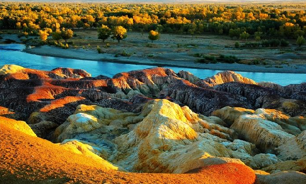 五彩灘的特別,還由于它色彩絢爛,形狀繽紛。因?yàn)檫@里有侏羅紀(jì)時(shí)代的煤層,經(jīng)過千萬年風(fēng)蝕雨剝以及河水的沖刷,在幾乎寸草不生的河灘上出現(xiàn)了紅、綠、紫、黃、棕等鮮艷的色彩。在河水的映襯和夕陽(yáng)的照射下,當(dāng)你走進(jìn)這高低起伏的“丘陵”地帶,就如同走進(jìn)一個(gè)五彩斑斕夢(mèng)幻般的世界,那些光怪陸離的色彩從四面八方撲面而來,都是那么明快、那么強(qiáng)烈、那么豐富多彩,真讓你感到目不暇接,眼花繚亂。除此之外,五彩灘又仿佛是一個(gè)造型奇特的天然泥塑館。這里既有形狀各異的山川高原,又有大小石峰、石墻、石柱、疏密相生,既有雄風(fēng)大氣,又有似水柔情。而形成這些不同造型并非堅(jiān)硬的巖石,而是泥巖和砂巖,表面土質(zhì)都非常松,不小心踩一下碰一下就可能破碎。版權(quán)所有聊城聊之旅國(guó)際旅行社有限公司,轉(zhuǎn)載必究!但就是這些松弛的泥砂卻表現(xiàn)出了巨礫重疊,溝溝壑壑的景象。其中有的像神秘的古堡,使你疑問這里是否曾有誰(shuí)居???有的像凝固的瀑布,仿佛濃縮著當(dāng)年銀波翻騰的洶涌,有的形似怪獸、蜂叢……。