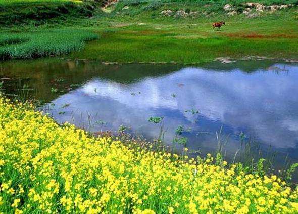 于甘肅夏河縣城西南1公里處,是桑科鄉(xiāng)達(dá)久灘(“跑馬灘”之意)草原的一部分,為四周群山環(huán)抱,中間開闊平坦的高山草原。??撇菰写笙暮铀畯哪系奖毙煨炝鬟^,水草豐茂,風(fēng)景優(yōu)雅,藍(lán)天白云下牛羊成群,一派自然田園風(fēng)光。??撇菰瓪v史為藏科人民的天然牧場。 每到夏季,草場碧綠姨毯,各色花卉爭奇斗艷,絢麗多彩,天高氣爽,是草原旅游、避暑和體驗藏族旅游牧生活、回歸自然的理想旅游場所。