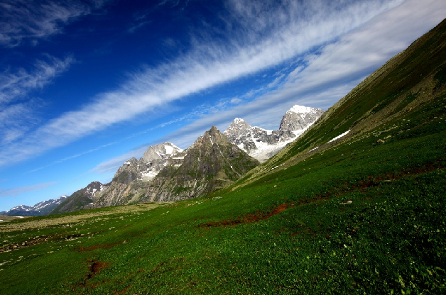 由于受西伯利亞冷濕氣流影響,這周圍降水豐沛,森林密布,牧草繁茂,景色迷人。友誼峰的西南坡分布有大面積的冰川。它是喀納斯河的源頭,也是阿爾泰山最大的冰川。版權(quán)所有聊城聊之旅國際旅行社有限公司,轉(zhuǎn)載必究!友誼冰川是我國海拔最低的山谷冰川,在國內(nèi)外享有極高聲譽(yù)。氣勢磅礴的友誼峰冰川受外界作用,形成了獨(dú)特的地貌形態(tài),大小不等的冰裂縫遍布友誼峰冰川,堪稱世界奇觀。由于友誼峰冰川所處的緯度偏北,具有較好的代表性,是科學(xué)考察研究及旅游探險(xiǎn)的最佳基地,在這里一天可以感受到四季的變化。