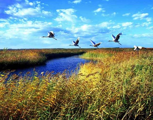 本區(qū)屬北溫帶大陸性季風氣候,是同緯度地區(qū)景觀最原始、物種最豐富的濕地自然綜合體。嫩江支流烏裕河到此失去河道,漫溢成大片沼澤,葦叢茂密、魚蝦叢多,是水禽理想的棲息地。區(qū)內(nèi)各種植物區(qū)系的交錯地帶,雖然植物種類、類型貧乏,但成分復雜。據(jù)調(diào)查,區(qū)內(nèi)具有高等植物468種,隸屬于67科,草本植物占絕大多數(shù)。本區(qū)無特有種,除世界種及大陸廣泛分布種外,蒙古植物區(qū)系成分占15.2%;達烏里植物區(qū)系成分占14.5%;滿洲植物區(qū)系成分占12.7%;華北植物區(qū)系占4.1%。根據(jù)扎龍地區(qū)植被的建群種、地形地勢、水分條件、群落的結(jié)構(gòu)與外貌、土壤種類等生物與非生物因子,可將該區(qū)植被分為4個類型。保護區(qū)有魚類46種,隸屬于9科。兩棲類、爬行類相對貧乏,兩棲類有四科六種,分別為極北鯢、大蟾蜍、花背蟾蜍、無斑雨蛙、黑斑蛙、黑龍江林蛙;爬行類有鱉和麻蜥兩種。獸類21種,隸屬5目9科。昆蟲類277種,隸屬于11目65科。鳥類約260種,隸屬17目48科。其中國家重點保護鳥類有35種,最為著名的是鶴類,全世界有15種,中國有9種,本區(qū)就有丹頂鶴、白鶴、白頭鶴、白枕鶴和蓑羽鶴6種,不愧為獨步世界的“鶴鄉(xiāng)”。其中四種為繁殖鳥,全世界現(xiàn)存丹頂鶴2000只,本區(qū)即有346只的繁殖種群,占全世界丹頂鶴總數(shù)的17.3%,現(xiàn)已列入全球瀕危種類。版權(quán)所有山東聊城聊之旅國際旅行社有限公司,轉(zhuǎn)載必究!白枕鶴有34只,灰鶴1986年第一次發(fā)現(xiàn)巢,蓑羽鶴有50多只。有國家一、二級保護鳥類35種,一級有丹頂鶴、白枕鶴、白琵鷺等。沼澤邊緣和臨近農(nóng)田常見到大鴇。除豐富的鳥資源外,還有20種獸類,包括狼、赤狐、狍、獾和黃羊等;兩棲類四種,有中國林蛙、黑斜線蛙、列斑雨蛙、花嘴蟾蜍;爬行動物有3種,包括蜥蜴、淡水龜?shù)?;水生魚類40種,鯽魚最為豐富。