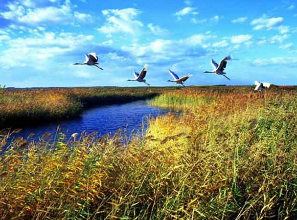 扎龍國(guó)家級(jí)自然保護(hù)區(qū)位于黑龍江省齊齊哈爾市境內(nèi)(部分地區(qū)位于大慶市杜爾伯特蒙古族自治縣和林甸縣境內(nèi)),面積21萬(wàn)公頃,1979年建立省級(jí)自然保護(hù)區(qū),1987年晉升為國(guó)家級(jí),1992年被列入“世界重要濕地名錄”,主要保護(hù)對(duì)象為丹頂鶴等珍禽及濕地生態(tài)系統(tǒng)??偯娣e2100.00平方公里。扎龍自然保護(hù)區(qū)是全國(guó)較大的丹頂鶴等大型水禽和濕地生態(tài)類型自然保護(hù)區(qū)。烏裕爾河在這里地區(qū)處于閭尾狀態(tài),河水漫溢,形成廣闊的以生長(zhǎng)蘆葦為主的沼澤地帶。保護(hù)區(qū)內(nèi)湖泊泡澤星羅棋布,水生、濕生植物廣泛分布,浮游生物、水棲昆蟲(chóng)、軟體動(dòng)物和蛙類、魚(yú)類大量繁殖,水禽的食物來(lái)源十分豐富。每年4月到6月為水禽繁殖期,這是親鳥(niǎo)采食時(shí)間長(zhǎng),有利于雛鳥(niǎo)的物質(zhì)能量積累和發(fā)育生長(zhǎng)。由于水面廣闊,沼澤淤泥軟陷,不利于漁獵生產(chǎn)和獸類活動(dòng),成為水禽的天然保護(hù)地和生活樂(lè)園。原始的自然景觀、完整的濕地生態(tài)系統(tǒng),是丹頂鶴等大型水禽的棲息繁衍的優(yōu)越場(chǎng)所。扎龍自然保護(hù)區(qū)以水禽為主的鳥(niǎo)類共有150多種,尤以鶴類種類多、密度大而著稱于世,素有“鶴的故鄉(xiāng)”之稱。世界上鶴類有15種,中國(guó)有9種,在扎龍自然保護(hù)區(qū)生活的就有6種,即丹頂鶴、白枕鶴、蓑羽鶴、白頭鶴(繁殖鳥(niǎo))、白鶴、灰鶴(旅鳥(niǎo))。加上引進(jìn)人工飼養(yǎng)的灰冠鶴、沙丘鶴、澳洲鶴、吐綬鶴、藍(lán)鶴、黑冠鶴,鶴類已達(dá)12種,是世界上鶴類種類最多,數(shù)量最大的自然保護(hù)區(qū)。其他珍貴西游的水禽還有白鸛、黑鸛、大天鵝、小天鵝、鴛鴦、大白鷺等國(guó)家一、二、三類保護(hù)鳥(niǎo)類15種。其中一丹頂鶴最為著名。