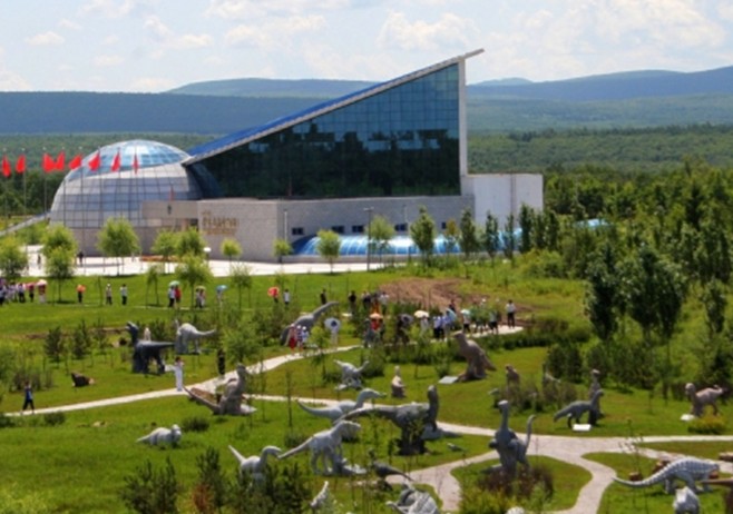 黑龍江嘉蔭神州恐龍博物館坐落在中俄大界河黑龍江右岸,距嘉蔭縣城西12公里。博物館占地面積13萬平方米,建筑面積4650平方米,展廳面積2100平方米,是一座將自然科學(xué)和人文景觀緊密結(jié)合的大型綜合博物館。館內(nèi)陳列著由鴨嘴龍、霸王龍、疾走龍、甲龍的骨骼化石組裝成的8具恐龍化石骨架。版權(quán)所有山東聊城聊之旅國(guó)際旅行社有限公司,轉(zhuǎn)載必究!這是我國(guó)自四川自貢、云南祿豐、江蘇常州、內(nèi)蒙古二連浩特恐龍博物館后又一座大型恐龍博物館。