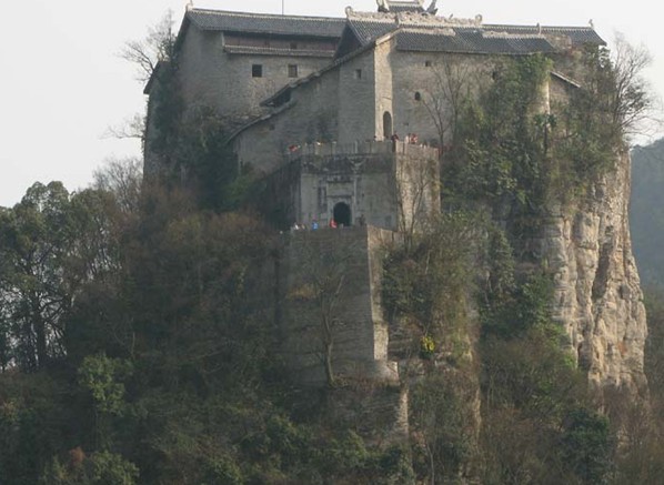 天臺(tái)山伍龍寺是屯堡古寺廟建筑的典范,它雄峙于一峰獨(dú)秀的天臺(tái)山上,四周城墻懷抱,是軍事功能和宗教功能合一的建筑。伍龍麉是屯堡古寺廟建筑中保存最完整的明清建筑群。它始建于明萬(wàn)歷十八年(公元1590年),被建筑專家贊譽(yù)為“石頭建筑的典范”、“深山明珠”。它的結(jié)構(gòu)分內(nèi)外兩部分,外部均用石塊砌壘,與山巖由于風(fēng)化造成的水平線十分接近,渾然一體,表現(xiàn)出粗獷的性格,墻壁上開(kāi)極少的貓窗。
