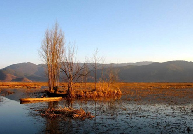 草海是貴州最大的淡水天然湖,是一個(gè)典型的高原濕地生態(tài)系統(tǒng),湖的南岸有一個(gè)約0.33平方公里的半島,最窄處僅有200米寬的地段與陸地相連,草海湖盆面積45 km2,湖底海拔2170m,平均水深2m,正常水位高程為2171m,相應(yīng)水面積20 km2。1992年,國(guó)務(wù)院批準(zhǔn)為國(guó)家級(jí)自然保護(hù)區(qū)。草海位于貴州西部威寧縣境內(nèi)。是貴州最大的天然淡水湖,海拔2171.7米,覆蓋面積保持在30平方公里以上,以水草繁茂而得名。草海四面青山環(huán)抱,林木茂密。湖中盛產(chǎn)魚蝦、蒲草等水生動(dòng)植物,棲息著100多種珍奇水鳥,中國(guó)特有的高原候鳥黑頸鶴,每年都要在這里越冬。主要保護(hù)以黑頸鶴為主的濕地鳥類。草海素有“鳥的王國(guó)”之稱,共有鳥類100余種、珍稀鳥類70余種,特別珍稀的鳥類有黑頸鶴、灰鶴、丹頂鶴、黃斑葦雉、黑翅長(zhǎng)腳鷸和草鷺,還有大量的大雁和野鴨,是世界人禽共生、和諧相處的十大候鳥活動(dòng)場(chǎng)地之一,是冬春觀鳥、夏秋避暑的最佳選擇地。草海冬季溫暖,氣候宜人。暮春時(shí)節(jié),草海周圍開放著大面積千姿百態(tài)、絢麗動(dòng)人的杜鵑花。秋天的草海最美,湖中的水草在碧水中開出一朵朵、一串串、一片片的黃花、紅花和白花,船行其中,花隨水波浮動(dòng),如入仙境。草海的冬天,則是觀賞黑頸鶴等300余種鳥類的最好季節(jié)。草海四面青山環(huán)抱,林木茂密,水天一色,翠峰鵠立,版權(quán)所有山東聊城聊之旅國(guó)際旅行社有限公司,轉(zhuǎn)載必究!草海西部有一孤島叫“陽(yáng)關(guān)山”島上竹籬茅舍,雞犬相聞,湖中白帆點(diǎn)點(diǎn),波光粼粼,一片寧?kù)o淡泊的世外桃源景象。草海東南水面有六洞橋及望海樓,沿橋煙柳長(zhǎng)堤,垂柳依依,長(zhǎng)堤?hào)|端有寺廟,相傳呂洞賓曾到此一游。草海盛產(chǎn)魚蝦,水禽,蒲草等水生動(dòng)植物,棲息著珍奇水鳥。其中最多也最著名的有黑頸鶴和野鴨等。這里的氣候濕潤(rùn)溫和,故一到暮春時(shí)節(jié),草海便整個(gè)地被千姿百態(tài)的杜鵑花覆蓋著。為草海沉寂的大地平添了幾許活力與生機(jī)。草海附近的彝族風(fēng)景迷人,每年端陽(yáng)節(jié),彝族群眾在這里舉行賽馬,青年男女在蘆笙山歌中翩翩起舞,互傳眉目之歡。