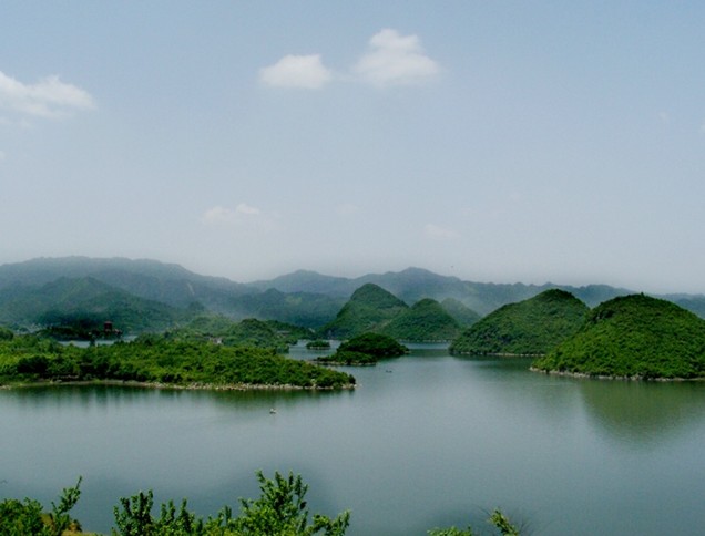 百花湖畔,清鎮(zhèn)市第二高峰云歸山,自東向西環(huán)抱鄉(xiāng)境,支脈延伸,千姿百態(tài),青翠秀麗。丘陵、槽谷、山地、水域連為一體,形成一個(gè)生態(tài)大板塊。云歸山居清鎮(zhèn)市八景之首,“爐嶺歸云”高聳入云,極目百里,昕夕云集。云歸林區(qū)、九里箐,方圓七十余里,原生植被,物種繁多,森林茂密,鳥語花香,山谷幽深,清泉汩汩。石操、上麥城、下麥城、溫水、哪嘎、盤龍洞等林場(chǎng)構(gòu)成道道生態(tài)屏障。為打造“森林生態(tài)”文化,相繼實(shí)施長江防護(hù)林、天然林資源保護(hù)、退耕還林還草、沿湖綠化工程,森林面積從“九五”末的8.89萬畝增加到2006年的9.63萬畝,森林覆蓋率提高到60%。林密、地綠、山青、水秀使百花湖鄉(xiāng)成為名副其實(shí)的避暑勝地、“天然大氧吧”。綠色農(nóng)業(yè)、生態(tài)農(nóng)業(yè)成為調(diào)整產(chǎn)業(yè)結(jié)構(gòu)的主攻方向,十里杜鵑、十里櫻桃、百畝李子、千畝高產(chǎn)油菜、百畝烤煙、百萬只肉雞飼養(yǎng)、無公害茶樹菇等基地初見成效,促進(jìn)了農(nóng)民增收,版權(quán)所有山東聊城聊之旅國際旅行社有限公司,轉(zhuǎn)載必究!2006年農(nóng)民人均純收入2877元。蘿卜、云歸、三屯一帶十里峽谷盛產(chǎn)櫻桃,杜鵑遍山,獨(dú)具“春到三月意更濃,云歸十里櫻桃紅。杜鵑滿山織云錦,農(nóng)家年年坐春風(fēng)”的詩情畫意。“品云歸櫻桃,賞十里杜鵑、烤百花鮮魚”,是百花湖旅游的獨(dú)特享受。境內(nèi)三季有果、四季有花,生機(jī)盎然,漫步山間田野,賞花品果,其樂無窮。 百花湖鄉(xiāng)境內(nèi)河流眾多,水資源豐富。上世紀(jì)60年代因建百花電站形成的百花湖,與紅楓湖并稱“姊妹明珠”。蓄水2.1億立方米,水面14.5平方公里,92%在百花鄉(xiāng)境內(nèi)。如今湖面如鏡、影映青山、振翅小島、層層梯田、點(diǎn)點(diǎn)農(nóng)舍、縷縷炊煙,一派田園風(fēng)光,成為休閑避暑、度假觀光的旅游勝地。百余個(gè)峰叢島嶼靜臥水中,迎客松、石鏈鎖猴、青蛙聽濤、小三峽、嬌燕戲水、八仙過海、筆峰疊翠等自然景觀千姿百態(tài)。百花湖沿岸,三屯五堡之間,百花山莊、百花游樂園、明月樓、觀云樓、靈達(dá)度假村、星苑等一幢幢旅游建筑拔地而起,集會(huì)議、休閑、餐飲、娛樂、觀光為一體。著名作家金庸星苑登樓觀景,欣然贊曰“如此湖山天下無,天然勝景百花湖”。