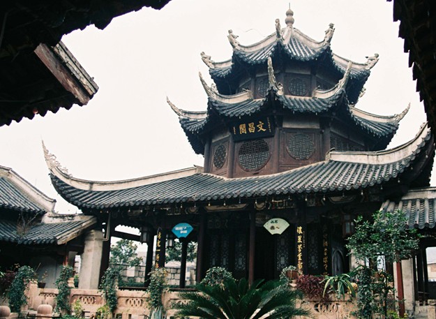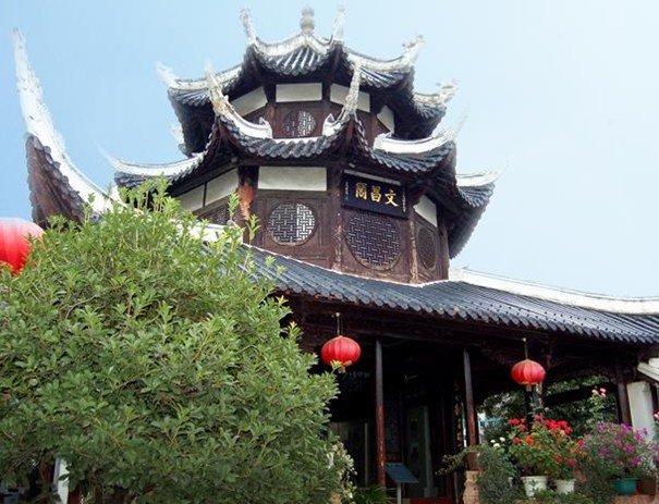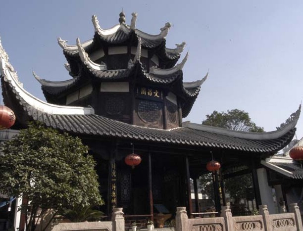 文昌閣,位于貴陽城區(qū)東隅,始建于明萬歷三十七年(1609年),占地1200平方米,以設(shè)計巧妙、結(jié)構(gòu)獨(dú)特而著名,是省級重點(diǎn)文物保護(hù)單位。道教廟宇。在貴州省貴陽市東門月城上。始建于明代萬歷三十七年 1609),清代康熙八年(1669)重修,雍正、乾隆、嘉慶、道光時均有維修和擴(kuò)建。該閣是一座九角三層寶塔形建筑,兩邊設(shè)有配殿,前為聯(lián)結(jié)配殿的齋房,平面布局成四合院形。主樓高約20米,面闊11.47米,進(jìn)深11.58米,為三層三檐、不等邊九角攢尖頂,各層插拱較多,斗呈曲線,翹角不高,窗花和枋板施有彩繪,其建筑風(fēng)格頗具地方特色。原為供奉文昌帝君之所,現(xiàn)是貴陽文物保護(hù)單位。