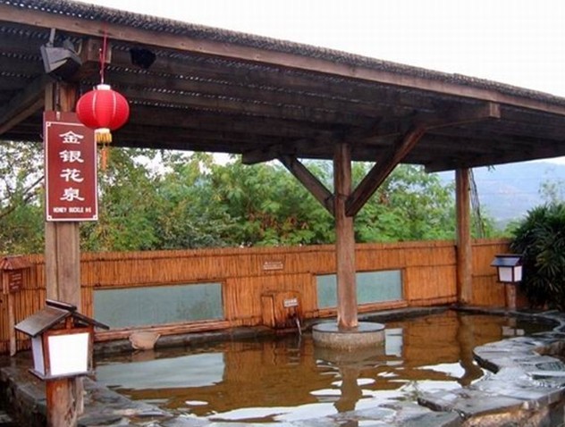 明皇御溫泉位于貴州省開陽(yáng)縣雙流鎮(zhèn)白馬洞熱水村,距貴陽(yáng)58公里,距貴遵高等級(jí)公路久長(zhǎng)收費(fèi)站10公里。占地面積1.83公頃,叢林環(huán)抱,依山傍水。明皇御溫泉酒店為園林式設(shè)計(jì),一色的古典中式建筑,帶著濃郁的盛唐遺風(fēng),傳承著皇家園林的古樸與厚重,是以吃、住、娛樂為一體的休閑度假溫泉準(zhǔn)四星酒店。酒店內(nèi)兩大浴區(qū)分設(shè)男、女賓部,一號(hào)浴區(qū)以“六沸湯池”、“浴療包房”、“露天麒麟池”為特色,二號(hào)浴區(qū)設(shè)室內(nèi)32℃恒溫泳池和42℃半園池及休息廳。園中一大池,名為“貴妃池”,四周飾以輕紗薄幔,隨風(fēng)拂動(dòng),似有若無。園內(nèi)的茶部陳設(shè)著各類奇石,40余塊貴州龍化石尤為引人注目。漫步在古銀杏樹下、大小700株盆景旁,欣賞著400余幅來自杭州書畫院名家的精品書畫,思緒悠然。 御園內(nèi)設(shè)有禮、茶、賓、療、浴、膳六部,還設(shè)有大小會(huì)議室四間及禮儀服務(wù)、卡拉OK廳、露天網(wǎng)球場(chǎng)、羽毛球場(chǎng)。明皇御溫泉井底溫度45℃,水中含有對(duì)人體有益的鍶、鋰、鋅、硒等微量元素,PH值7.64,水質(zhì)屬于軟性水。版權(quán)所有山東聊城聊之旅國(guó)際旅行社有限公司,轉(zhuǎn)載必究!水質(zhì)清純,可飲可浴。