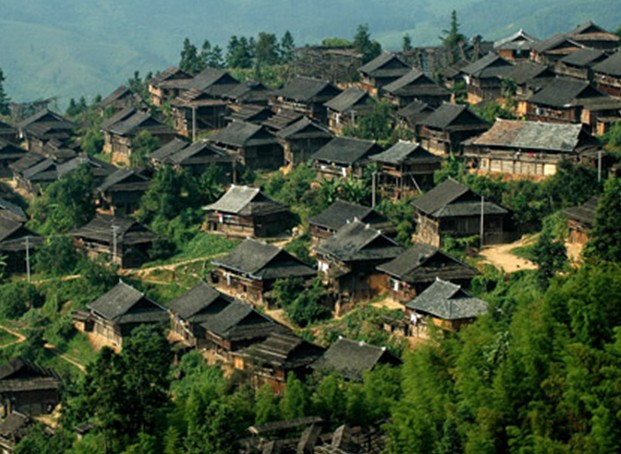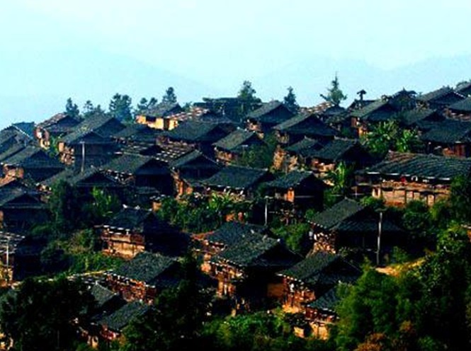 岜沙苗族部落僅2000余人,分住在貴州省從江縣城南6公里處月亮山麓茫然林海中的5個(gè)寨子里。走進(jìn)岜沙,隨處可見茂密的森林。他們以稻作為主,狩獵為伴。這里箐黑林密,鳥道蠶叢,具有很強(qiáng)的隱蔽性,千百年來極少有外人進(jìn)入。岜沙村不大,村寨建于山粱坳口及面向都柳江一側(cè)的半坡上。村寨木樓古樸、簡單;四周則為密林環(huán)繞,環(huán)境幽雅;村民全系苗族,衣著傳統(tǒng),發(fā)勢奇特。