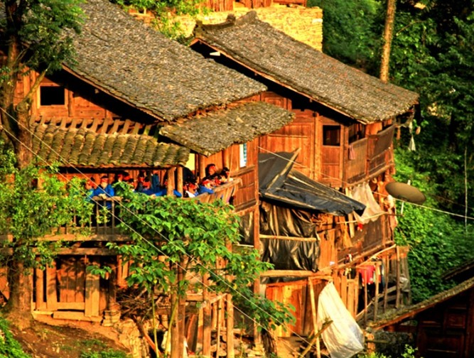 榕江縣侗家村寨大多坐落在古樹參天,風(fēng)光秀麗,竹林掩映,依山傍水的地方。房屋多為二層或三層不等的木質(zhì)結(jié)構(gòu)吊腳樓,吊腳樓一般依山勢(shì)開辟成兩層地基,下層屋基柱腳須用筒柱支撐,有的因偏廈建在地基之外的村巷上或魚塘上而無(wú)支柱造成木樓空懸,吊腳樓因此而得名。七十二寨的房子,每幢樓一般分兩間或三間,也有五間或七間的。除了正屋外,兩側(cè)還設(shè)有寬約丈許,與正屋進(jìn)深等長(zhǎng)的偏廈,上樓的樓梯多架于正屋右側(cè)的偏廈上,二樓前邊是一道由東直通往西的長(zhǎng)長(zhǎng)走廊,廊沿外及整個(gè)房子四周先裝木板后于裝板外鑲嵌雕花格子,這就是我們通常所說的雕房。走廊里外分別擺放有幾根寬約尺許,長(zhǎng)達(dá)丈余的杉或松木板凳供客人休息用。七十二寨侗族的火堂一般設(shè)在堂屋里間或兩側(cè)房間內(nèi),火堂分“平燒火堂”和“高燒火堂”兩種。樓下主要用來關(guān)養(yǎng)牲畜,樓上住人,存放糧食,天樓堆放生活、農(nóng)用雜物等。平燒火堂的表層齊樓板表面,裝滿黃泥巴的撻斗形狀的火堂斗高約一尺,長(zhǎng)寬約1米見方,懸于樓板下邊;高燒火堂的泥斗置于樓板之上,火堂表面高于樓板尺許,左右及內(nèi)側(cè)再鋪一層樓板,形成上下兩層,就表上層連火堂形成長(zhǎng)約一丈,寬約六尺的長(zhǎng)方形樓臺(tái),臺(tái)下的樓板僅余常約一丈,版權(quán)所有山東聊城聊之旅國(guó)際旅行社有限公司,轉(zhuǎn)載必究!寬4尺的狹長(zhǎng)形,與火堂表面形成兩層,這就是獨(dú)具特色的七十二寨侗族“火鋪臺(tái)”。“火鋪臺(tái)”主要用于炊事和烤火,其下面一般是用來存放紅苕、洋芋等物。這就是七十二寨侗家人房屋建筑的特點(diǎn)。
