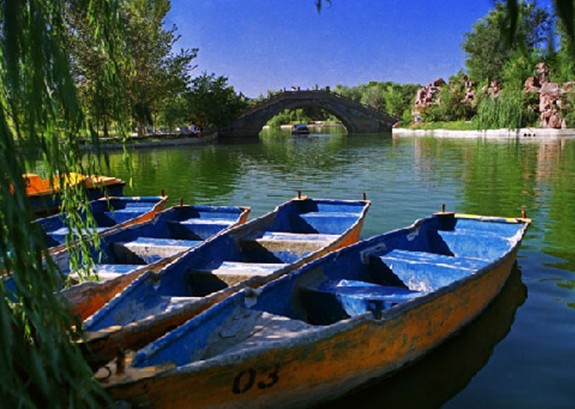 昌吉市人民公園 建于一九八四年,是新疆昌吉回族自治州范圍內(nèi)面積最大,各項(xiàng)游樂設(shè)施最全的獨(dú)具古典特色的文化公園。園內(nèi)景致清幽,碧樹成蔭,2.6公頃的人工湖清澈見底,湖邊有垂柳和繁花點(diǎn)綴,人工堆山地形起伏,松柏覆蓋;山下亭閣、長(zhǎng)廊、小橋流水;在綠蔭叢中,有民族風(fēng)情的蒙古包、農(nóng)家樂又一村,讓人們隨意野炊,享受無憂無慮的草原生活。