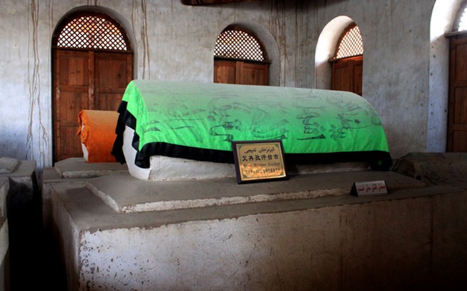 位于新疆哈密市西郊的蓋斯墓又稱“圣人墓”、“綠拱背”。相傳,唐貞觀年間,應(yīng)唐太宗李世民邀請,伊斯蘭教先知穆罕默德派弟子蓋斯、吾外斯,萬嘎斯三人來中國傳教。萬嘎斯病逝廣州,蓋斯和吾外斯到達長安,受到唐太宗的歡迎?;貒局校嵬馑共∈庞诤游髦鼗乇?蓋斯則于唐貞觀九年(公元635年)歿于星星峽,被草草掩埋。后來,哈密回王派人在星星峽為其修建一座拱背。