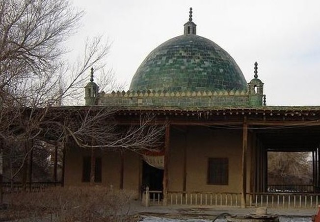 位于新疆哈密市西郊的蓋斯墓又稱“圣人墓”、“綠拱背”。相傳,唐貞觀年間,應(yīng)唐太宗李世民邀請,伊斯蘭教先知穆罕默德派弟子蓋斯、吾外斯,萬嘎斯三人來中國傳教。萬嘎斯病逝廣州,蓋斯和吾外斯到達長安,受到唐太宗的歡迎?;貒局校嵬馑共∈庞诤游髦鼗乇?蓋斯則于唐貞觀九年(公元635年)歿于星星峽,被草草掩埋。后來,哈密回王派人在星星峽為其修建一座拱背。《新疆圖志》記載:“星星峽麓有回紇墓。……。土人為醵金建屋,覆其壟,禱輒響應(yīng),匾額充棟,亦有施錦幢墓上者,恒積尺許”。后來拱背被拆毀,民國28年(1939年)時由哈密伊斯蘭教徒發(fā)起,修建了蓋斯墓,將蓋斯遺骸由星星峽遷葬于此。蓋斯墓為伊斯蘭式建筑,高約10米,下部方形,上部為拱式圓頂,頂部用綠色琉璃瓦鑲砌,四周有廊檐,這座陵墓規(guī)模不大,版權(quán)所有山東聊城聊之旅國際旅行社有限公司,轉(zhuǎn)載必究!但因安葬“圣人”而聞名,許多不能去麥加朝圣的伊斯蘭教徒,紛紛來這里朝拜。朝拜者所獻錦幛掛滿墓內(nèi)墻壁,疊蓋在“圣人”墳上。相傳蓋斯墓遺骸長約六尺余,胸部肋骨之間皮肉相連,頦下的胡須猶存。蓋斯墓東西長22米,南北寬12米,通高15米,基座方形,圓形拱頂,遍覆綠色琉璃磚,四周為木柱支撐的回廊,四角飛檐,是一座融阿拉伯與漢族建筑風格于一體的建筑物。墓地四周筑圍墻,墻內(nèi)栽植各種樹木花草,環(huán)境尤為典雅幽靜。蓋斯墓有世界上保存不多的伊斯蘭教先賢的遺骨,是伊斯蘭信徒朝的重要圣地之一。