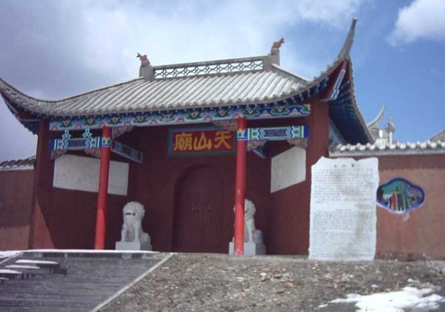 天山廟位于天山之巔,海拔640米,南距哈密市60千米。登臨天山廟,天山美景一覽無余。天山廟全稱"天山關(guān)帝廟",廟為方體建筑,長12米,寬7米,巨木為梁,青磚為墻,墻中嵌有四根立柱;上、下共三層,現(xiàn)頂部已毀。天山廟扼絲路北新道的咽喉要沖,它的歷史上可上溯至漢唐,天山廟與漢、唐、清三代經(jīng)營西域的歷史都有重大關(guān)系,原廟中存"聯(lián)額頗多"。因清乾隆五十一年(公元1786年)在天山頂部修建關(guān)帝廟而得名。