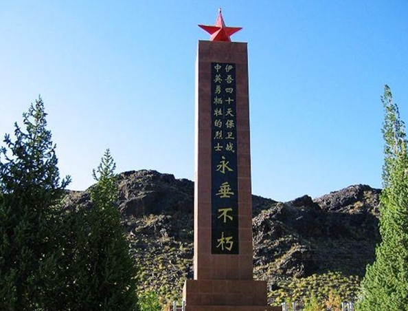 烈士陵園是伊吾人民為了緬懷在伊吾四十天保衛(wèi)戰(zhàn)中壯烈犧牲的革命烈士而建的。1950年春,在伊吾曾經(jīng)發(fā)生了震驚全國、震破敵膽的伊吾四十天保衛(wèi)戰(zhàn)。奉毛主席向新疆進(jìn)軍、屯墾戍邊的命令,我解放軍一營二連全體官兵在全國戰(zhàn)斗英雄胡青山副營長的率領(lǐng)下先后進(jìn)駐伊吾。1950年的伊吾偽縣長艾拜都拉與匪首烏斯曼、堯樂搏斯相勾結(jié),企圖以伊吾為據(jù)點(diǎn)發(fā)起大規(guī)模的武裝叛亂。