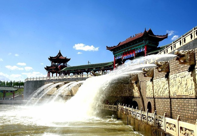 為襯托栩栩如生的九條龍,版權所有山東聊城聊之旅國際旅行社有限公司,轉載必究!在橫截干渠的大壩上還頗具匠心地修建了一組仿古建筑物,總建筑面積約達600平方米。有分列兩邊的兩座八角廳、位于正中的一座門樓和連接涼亭與門樓的長廊,在巨潭兩側也有長廊約100米。景區(qū)中,人行地面上鋪設的紅綠相間的地磚,美觀而整潔。幾個嶄新的公用電話亭體現(xiàn)了設計者以人為本的思想。那高高聳立、造型各異的路燈使夜幕下的九龍?zhí)秳e有一番風韻整個建筑物雕梁畫柱,色彩艷麗,具有濃郁的民族特色。作為人工建筑的旅游景點,九龍?zhí)兑砸鹩稳说臉O大關注,自景點建成以來,每天都有很多游人前來游覽、拍照,它已經(jīng)成為廣大市民引以為榮的濱河第一景。
