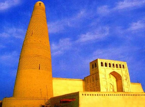 蘇公塔禮拜寺位于吐魯番市東南郊的葡萄鄉(xiāng)木納爾村,在蘇公塔景區(qū)內(nèi)。西距吐魯番2公里,東面與安樂古城相鄰。每逢肉孜節(jié)、古爾邦節(jié),穆斯林群眾,近的三人一群、五個一簇涌向禮拜寺;遠(yuǎn)的,騎毛驢、騎自行車、坐汽車從四面八方云集這里,頒經(jīng)禮圣,祈求福佑。