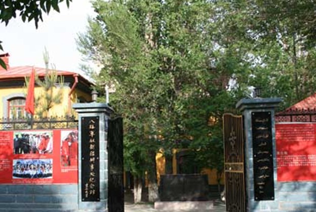 在烏魯木齊市勝利路二巷,版權(quán)所有山東聊城聊之旅國際旅行社有限公司,轉(zhuǎn)載必究!坐落著一幢兩層樓的小洋房。周圍綠樹掩映,花團(tuán)緊簇;院內(nèi)綠草如茵,潔凈如洗。大門外一側(cè)掛著一塊銅制牌子,上面鐫刻著1974年董必武親筆題寫的“八路軍駐新疆辦事處原址”11個(gè)大字。該建筑為一幢中西合璧,青磚砌腰壓檐,土木結(jié)構(gòu)的二層黃色樓房。樓頂南側(cè)有一座涼亭。登上涼亭,可以鳥瞰市區(qū)風(fēng)光。院內(nèi)聳立著數(shù)十棵參天白楊和四季長青的松柏。每年春季,迎春最早的杏花,點(diǎn)綴著滿院春色;夏秋季節(jié),園中的各色鮮花,爭妍奪目。紀(jì)念館為自治區(qū)級(jí)重點(diǎn)文物保護(hù)單位。