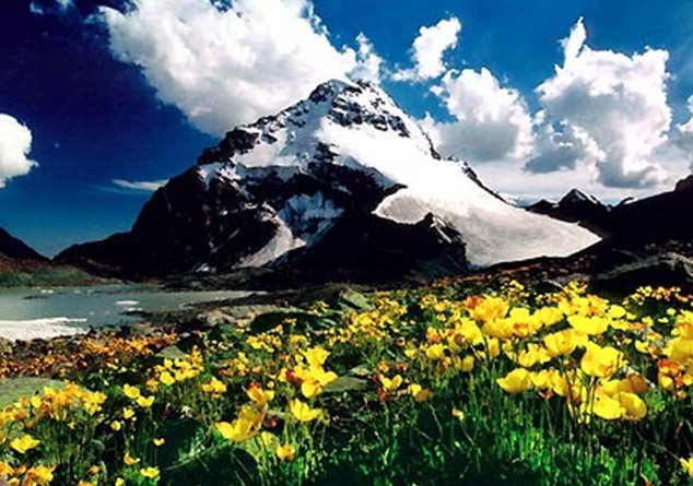 博格達山和它的母體天山一樣,是世界上最年輕的山脈之一,它在三億年前的造山運時于海水中初露頭角,及至六七萬年前的喜馬拉雅造山運動時才脫穎而出。博格達山主峰在天池南側,其上三峰并立,成“山”字形,中峰略高,海撥5445米,東峰海撥5287米。遠望三峰,屹立在一片茫茫雪海之上,就像三個擎天捧日的巨人,英武神勇,讓人感慨萬千。所以這被世人稱作雪海三峰的美景為歷代文人墨客所贊頌,寫了大量的贊美詩篇。長春真人邱處機在那首《宿輪臺東南望陰山》一詩中贊道:“三峰并起插云寒,四壁橫陳繞澗盤。”清代學者宋伯魯贊曰“三峰絕倚傍,終古插蒼冥”?!缎陆畧D志》的編修人王樹楠則更加形象地寫出了三峰的高大雄偉,詩曰“南山伸臂云天處,西域昂頭到日邊”。從這里我們多少可以領略到三峰的奇妙之處。博格達以奇為著,以險為絕,三峰昂天挺立,銀裝素裹,神峻異常。三峰之下更是千峰競秀,萬壑流芳,景色迷人。目力所及,遍是原始森林和山甸草原,蔥籠青翠,風光如畫。登博格達山,版權所有山東聊城聊之旅國際旅行社有限公司,轉載必究!最讓你賞心悅目的是,能在一日之內可見到四季之景。適逢七八月間,谷底正值盛夏,遍地山花怒放,香氣盈野,但多少有點暑氣燎人之感;待你登至半山,暑氣頓消,便覺春意盎然,遍地綠草如茵,如錦似毯,一切生命都迸發(fā)著勃勃微生機;再往上登,就漸感涼意襲人,草地也不似先前翠綠,而開始變得枯黃,給人一種秋天的感覺;及至到了雪線,便覺寒氣逼人,舉目望去一片銀白,雪光刺得你目不忍睜。這雪線附近,按說應是生命的禁區(qū),可是在這里卻生長著許多奇異的雪山花卉,如雪蓮、野罌粟、翠雀、金蓮、金嬌、百里香、梅花草等十幾種,它們的種子可在零度發(fā)芽,幼苗可經受零下30攝氏度的嚴寒。雖然它們每年僅有兩個月的生長期。但它們依然用一生的熱情催放出艷麗的花朵,來裝點寂寞的雪域。這真可謂生命的奇跡。