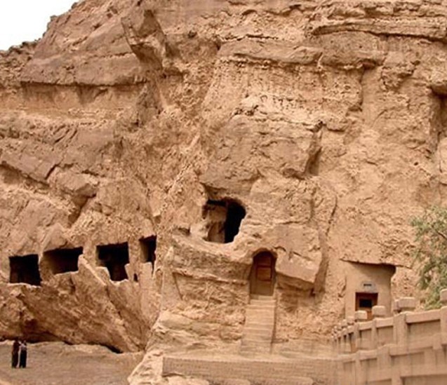 庫(kù)木吐拉千佛洞:約5 ~11世紀(jì)佛教石窟寺。開鑿在新疆庫(kù)車縣城西北30公里的渭干河谷的東岸,是僅次于克孜爾石窟的古龜茲較大的石窟群。庫(kù)木吐拉系維吾爾語(yǔ)譯音,意為“沙漠中的烽火臺(tái)”?,F(xiàn)有洞窟112個(gè),分為南區(qū),北區(qū),丁谷山峽谷區(qū)三部分。庫(kù)木吐拉千佛洞開鑿的時(shí)間從兩晉,經(jīng)隋唐,延續(xù)到宋代。