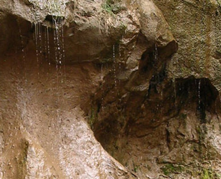 位于新疆境內(nèi)的克孜爾千佛洞景區(qū),“千淚泉”處在渭干河上游北岸的明屋塔格山上幽深的山坳中,在谷底,三面崖壁高聳呈橢圓狀,此處光線暗淡,空氣濕潤(rùn)清涼?!扒I泉”從山間滲出,宛若垂落在崖壁上的銀色珠簾,點(diǎn)點(diǎn)珠光飄然晃動(dòng)著,撩撥著人眼。