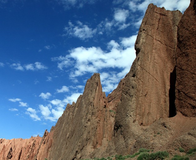 維吾爾語“克孜利亞”是“紅色的山崖”之意。神秘的“天山大峽谷”是天山支脈克孜利亞山中的一條峽谷,紅褐色巖石經(jīng)過大自然億萬年的風(fēng)刻雨蝕之下,才形成由現(xiàn)在“天山大峽谷”。“天山大峽谷”紅褐色的山體群直插云天,在陽光照射下,猶如一簇簇燃燒的火焰。“天山大峽谷”的迷人之處,不僅僅在于它的雄奇、險(xiǎn)峻,而在于它的幽深、寧靜和神秘。站在谷底仰視高山,只覺得陡峭的峰巒似乎隨時(shí)隨刻都會(huì)壓下來,令人感到窒息、眩暈。