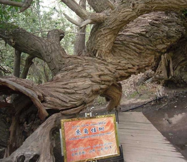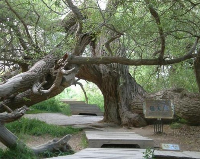 神木園其實是一處古墓地,它的原始名字叫庫爾米什阿塔木麻扎。在溫宿縣地圖上西北邊的一條公路兜住的那三個小圓點,就是新疆聞名遐邇的天山神木園的標注。溫宿縣志•卷二十七•第五章第四節(jié)古墓葬中對此記載如下:庫爾米什阿塔木麻扎位于薩瓦甫牧場場部東北10.7千米。地理坐標:東經79°42′26″,北緯41°35′32″。面積680畝,海拔1700米,尚存古墓數(shù)十座。相傳公元11世紀,沙特阿拉伯的一名叫蘇力塔庫爾米什賽依德的伊斯蘭教阿訇,帶領兩千名教徒,經印度到中國傳教,受到當?shù)厝说牡种撇l(fā)生沖突。敗退至此地時,大部分教徒戰(zhàn)死,蘇也陣亡,便埋葬在這里,形成了一個占地頗大的麻扎。其中呈圓形的最大的一個是蘇的墳墓,雖年久失修,確仍保持著穆斯林古老墓式。麻扎四周為戈壁荒丘,內卻以草綠、樹怪、泉多而聞名遐邇。該麻扎高出地面50米,滿山遍野長滿了綠草,山地像披上了一張綠色的地氈。草地里有10余處泉頭,泉水淙淙,從草地穿行而過,樹形千姿百態(tài),有的似神龍游動,屈折盤旋,貼地而伸:有的樹高達96。23米;有的樹枝與根部相連,分不出那是枝,哪是樹根。很多樹都是百年以上的老樹,版權所有山東聊城聊之旅國際旅行社有限公司,轉載必究!有的老樹倒地后又從根部發(fā)出新枝,長成參天大樹。庫爾米什阿塔木麻扎,既是穆斯林朝拜圣地,又是風景勝地,每年到這里朝拜、旅游者達萬余人次。為保護這一勝地,1986年縣財政拔款4萬元,群眾捐款十多萬元,對麻扎清真寺進行了修繕,并建筑了磚圍墻和架設了鐵刺圍欄。1989年11月,阿克蘇地區(qū)文物管理所普查隊來此地考查,被定為縣級文物保護單位,縣有關單位派有專人管理。麻扎東南20米處有一古墓群,計十余座,尚未發(fā)掘考察。這是1993年7月出版的溫宿縣志記載。從志書考證,神木園曾是一片處女地。公元11世紀,蘇力塔庫爾米什及其2000名教徒傳教殉職葬于此地后,當?shù)厝艘詭鞝柮资舶⑺韭樵鸀榇说孛H缃衲莻€古老的命名也只能從志書中去搜尋考證了。