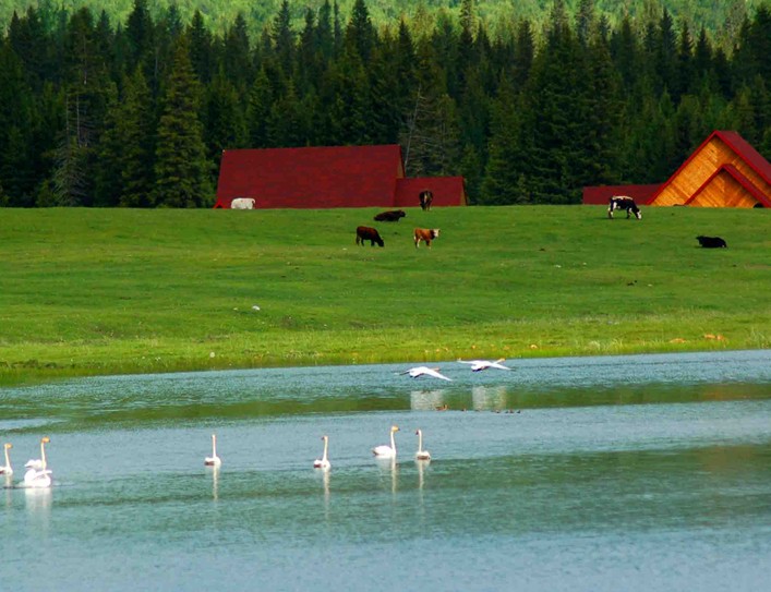 在新疆巴音布魯克草原中心地帶的巴音烏魯鄉(xiāng)以北 2公里處,有一條東西長30公里、南北寬10公里的高山湖泊,海拔2500~3000米,湖水瀠回如帶、清澈見底,水中生長著大量水生植物,四周群山環(huán)抱,綠草如茵,高山雪嶺倒映湖中,形成神奇迷離的自然景觀。每逢春末夏初,冰雪消融,大地復(fù)蘇,旅居在印度、緬甸、巴基斯坦,甚至遠(yuǎn)到黑海、紅海和地中海沿岸諸國的天鵝和雁鷗,不遠(yuǎn)萬里。