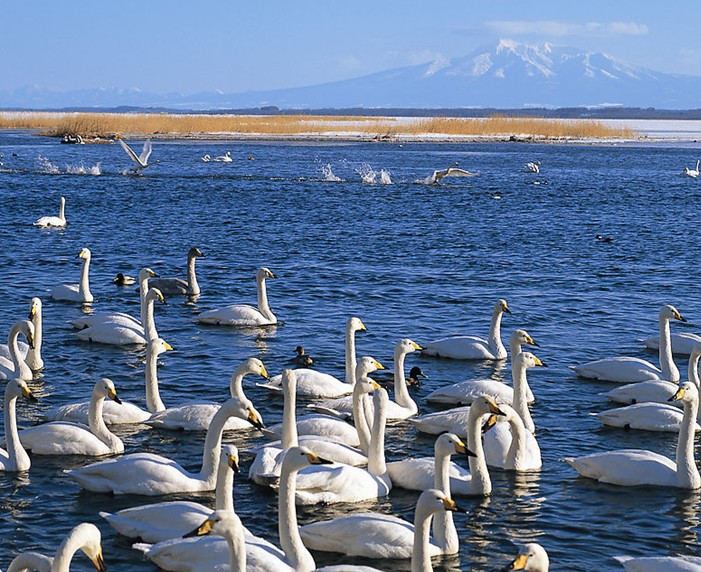 在新疆巴音布魯克草原中心地帶的巴音烏魯鄉(xiāng)以北 2公里處,有一條東西長30公里、南北寬10公里的高山湖泊,海拔2500~3000米,湖水瀠回如帶、清澈見底,水中生長著大量水生植物,四周群山環(huán)抱,綠草如茵,高山雪嶺倒映湖中,形成神奇迷離的自然景觀。每逢春末夏初,冰雪消融,大地復(fù)蘇,旅居在印度、緬甸、巴基斯坦,甚至遠(yuǎn)到黑海、紅海和地中海沿岸諸國的天鵝和雁鷗,不遠(yuǎn)萬里,成群結(jié)隊(duì)地飛到這里筑巢、換羽、求偶、生兒育女、棲息繁衍。這就是我國著名的巴音布魯克天鵝湖自然保護(hù)區(qū)。天鵝湖鳥類資源十分豐富,水禽種類多、數(shù)量大。據(jù)考察這里有大天鵝、小天鵝、疣鼻天鵝一萬余只;還有灰雁、斑頭雁、白頭鷂、燕鷗、白鷺等 100多種水鳥。其中灰鶴、黑鶴、羽鶴、大白鷺、金雕、禿鷲、胡兀鷲近10種珍稀鳥類,屬國家一、二級(jí)保護(hù)動(dòng)物。秋末時(shí)節(jié),天鵝們帶著各自“小寶貝”,時(shí)而歡騰在熱鬧的湖水中,時(shí)而擊水而起,版權(quán)所有山東聊城聊之旅國際旅行社有限公司,轉(zhuǎn)載必究!騰飛高空鍛煉著飛越千山萬水的本領(lǐng)。陽光下天鵝、湖水、山峰和云影構(gòu)成一幅“片水無痕浸碧天,山容水態(tài)自成圖”的畫卷。巴音布魯克能夠成為天鵝的故鄉(xiāng),不僅得益于這里獨(dú)特的地理環(huán)境和獨(dú)特的氣候條件,而且得益于當(dāng)?shù)孛晒抛迥撩癜烟禊Z視為貞潔之鳥、美麗的天使、吉祥的象征加以非常的愛護(hù)。保護(hù)站在天鵝湖畔的高地建有一座瞭望臺(tái),可供旅游者觀察天鵝的生活動(dòng)態(tài)。