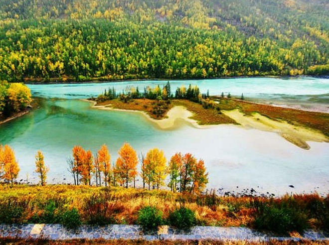 臥龍灣,是由喀納斯河在此長(zhǎng)期側(cè)蝕沖刷而形成一連串岸線曲折的河灣組成。河流在此,流速減緩,水面柔波浮動(dòng)。在Ω形河灣兩側(cè)發(fā)育兩個(gè)半島狀平臺(tái),河曲上為月牙形平臺(tái)。河灣內(nèi)發(fā)育兩個(gè)小心灘,像兩個(gè)巨大的腳印。版權(quán)所有山東聊城聊之旅國(guó)際旅行社有限公司,轉(zhuǎn)載必究!傳說是神仙也難以抗拒美景的誘惑,下凡賞景時(shí)所留。下游為臥龍灣平臺(tái),長(zhǎng)800米,寬450米,面積3.6萬平方米。登上東側(cè)公路旁海拔1500米處的側(cè)磧平臺(tái),俯視Ω形河曲全景,恰似一條蛟龍盤臥嬉水,臥龍灣由此得名。