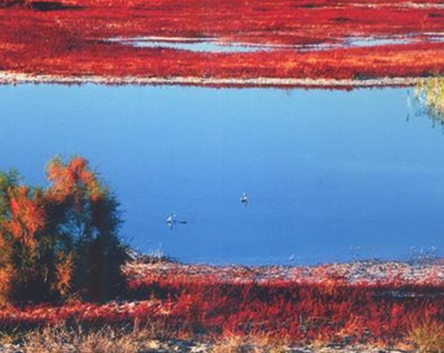 烏倫湖位于準噶爾盆地西北邊緣,分為大海子和小海子兩部分,其中大海子(布倫托海)是咸水湖,小海子(吉力湖)是淡水湖。兩湖之間有省道穿過。大海子東岸靠近省道的地方有一片細膩潔白的沙灘,長約十公里,適合進行沖浪、劃船、滑板等水上娛樂。這里湖水清澈,湖岸蘆葦叢生,黃昏可觀晚霞落日,景色迷人。小海子在大海子南邊,湖中有一鳥島,海鷗、天鵝、野鴨……成群結隊,翩然而至。湖中盛產(chǎn)魚類,岸邊小館子里有全魚宴,不可不嘗。
