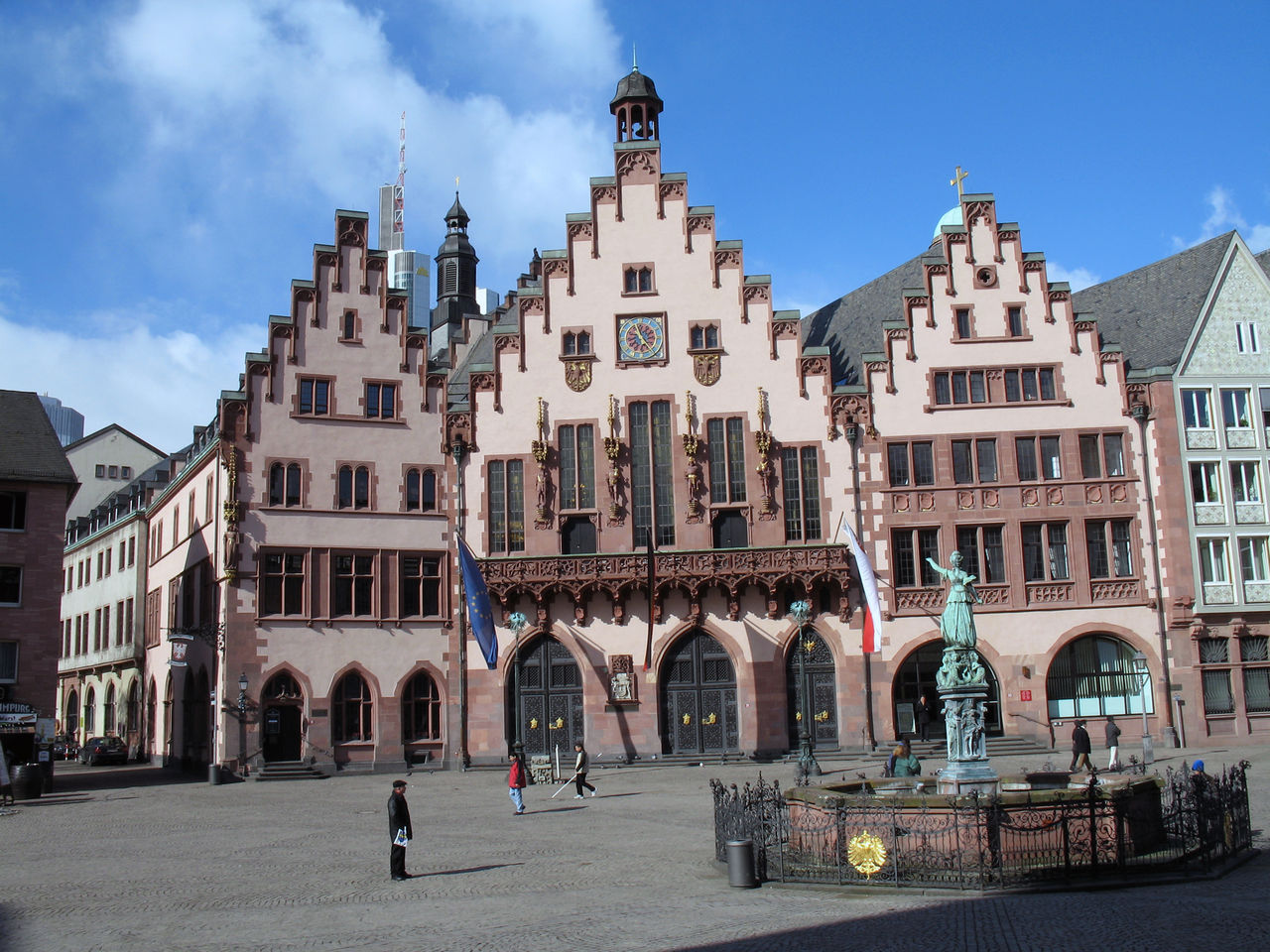 法蘭克人的基督教主教會議所在地最初位于緬因河唯一的渡口,而法蘭克福這一城市的名字也正因此得名——它源自于拉丁文“Franconofurd”,意思是“法蘭克人的渡口”。便利的交通條件使法蘭克福很快發(fā)展成為一個重要城市。