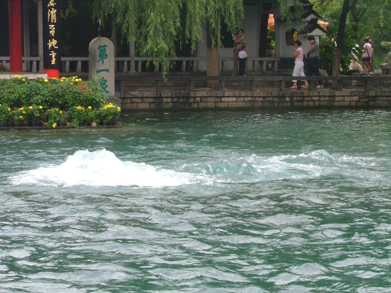 2010年9月23日,趵突泉泉水歡涌。當日,趵突泉地下水位升至30.01米,創(chuàng)1966年以來最高水位記錄,三窟迸發(fā)的景象令中秋節(jié)假日來此賞泉的游客大呼“過癮”。