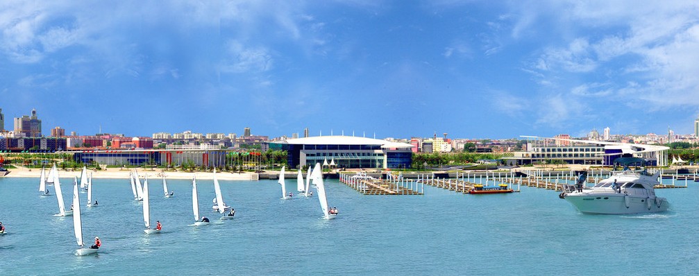 日照市世帆賽基地風景區(qū)位于中國日照市萬平口海域,總占地面積1.2平方公里。港池面積40萬平方米。分為淺水區(qū)、深水區(qū)、特深水區(qū)。主要設(shè)施有:浮動碼頭6條,停船泊位320個;帆船競賽上下水坡道150米;出???00米,擋沙提350米、防浪堤450米。陸域面積80萬平方米。