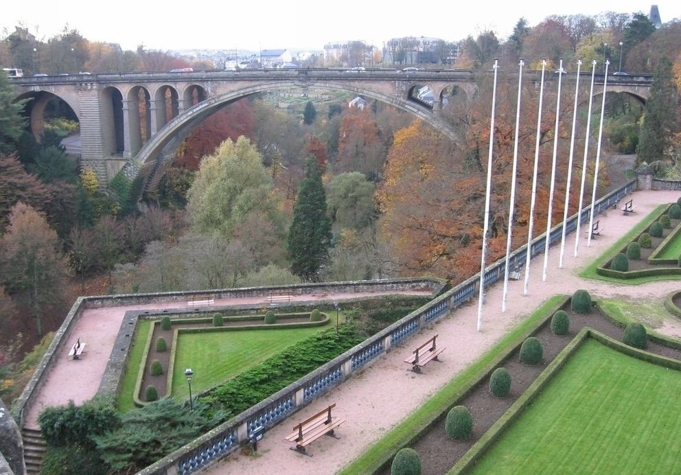 亞當(dāng)夫吊橋 亞當(dāng)夫吊橋是盧森堡的市標(biāo)之一,橋跨越峽谷,很壯觀,由火車站外過(guò)馬路沿AUENUELIBERTE走10分鐘就到。