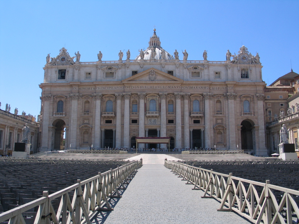 從羅馬的圣天使古堡進(jìn)入梵蒂岡圣彼得廣場(chǎng),首先映人眼簾的建筑就是位于廣場(chǎng)西面的圣彼得大教堂。這是世界上最大的教堂。在教徒心中那就是上帝居住的房子。