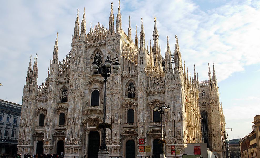 拱廊(Duomo & Piazza del Duomo):雄偉壯觀的哥德式建筑,為世界第二大教堂,世界最大的哥特式建筑。始建于1386年,完成于1813年,馬克吐溫稱之為“一首用大理石寫成的詩歌”。 可登上屋頂欣賞2245尊大理石雕像。piazza del duomo 位于市中心,是米蘭市的象征。它包含duomo和monumento equestre a vittorio emanuele II,這里經常有游人,鴿子逗留。米蘭人通常匆匆忙忙奔向商店,辦公地點。在大廣場,duomo誕生之前,有兩個教堂:Santa Tecla 和Santa Maria Maggiore.