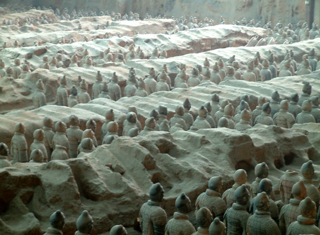 模擬的秦陵地宮,雖然只能讓人對秦始皇陵有個粗略的了解,但也更令人對真的秦始皇陵產生無盡的想象:秦始皇陵,這座中國歷史上的第一個皇帝陵園,至今尚未開發(fā),里面不知還埋藏著多少珍寶,也不知還有多少玄機……